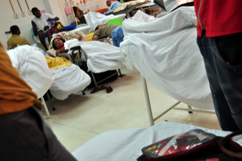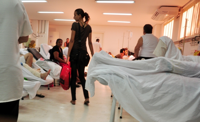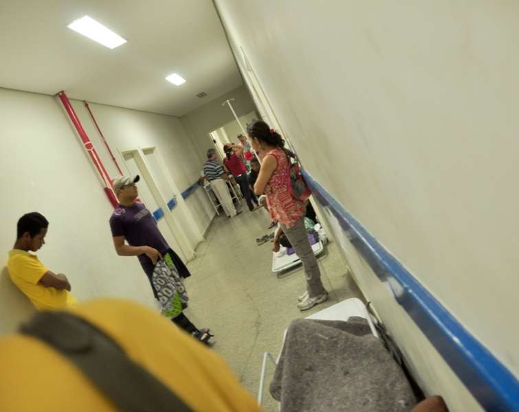No piso térreo, a poucos passos da ala pediátrica, são incontáveis as macas pelos corredores. Alguns pacientes ficam nos “leitos não-oficiais”, cobertos até a cabeça; outros se mostram mais inquietos e saem em busca de médicos ou enfermeiros. Um deles tinha a cabeça muito machucada, sangrando e fez o seguinte apelo a uma profissional que trajava branco: “Você é médico? Pode me dizer se a minha cabeça está sangrando?”. A funcionária ignorou dizendo não ser médica e deu as costas ao ferido. Com a movimentação intensa, a reportagem não foi identificada no local.
